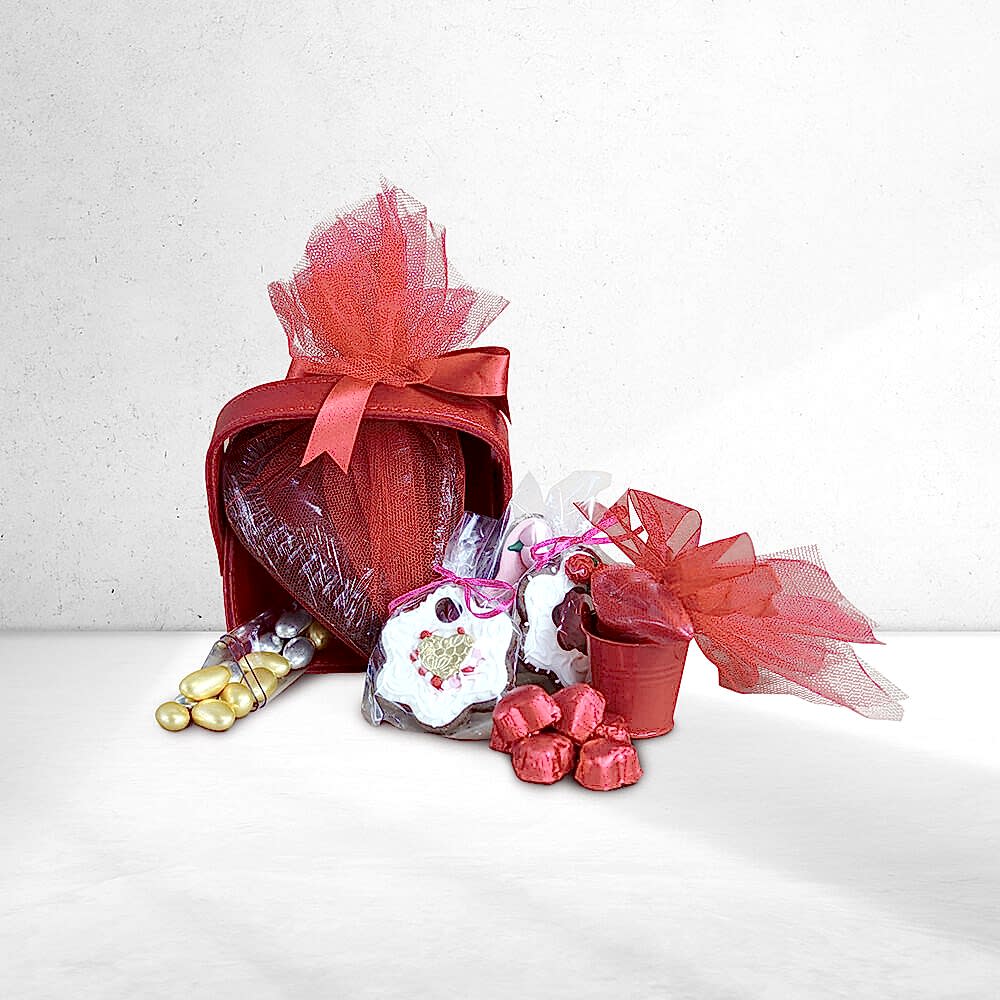 Büyük kalp çikolata 1 adet çiftli , dudak çikolata 1 adet yaldızlı mini kalp 70gr , sevgililer günü kurabiyesi 3 adet , 1 adet tilayt mum ve kovası, 85 gr Mini kutu draje 2820 TL